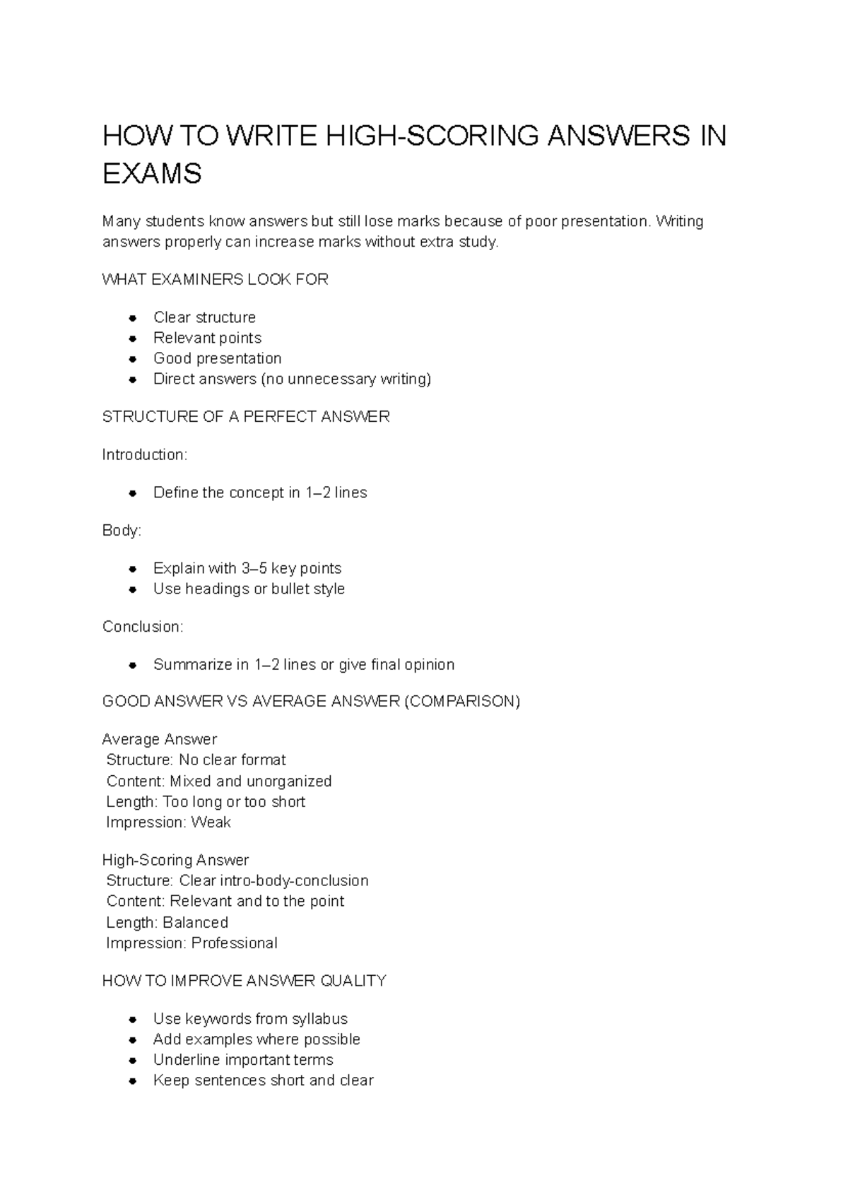 Effective Exam Answer Writing Strategies: Tips for Success - Studocu