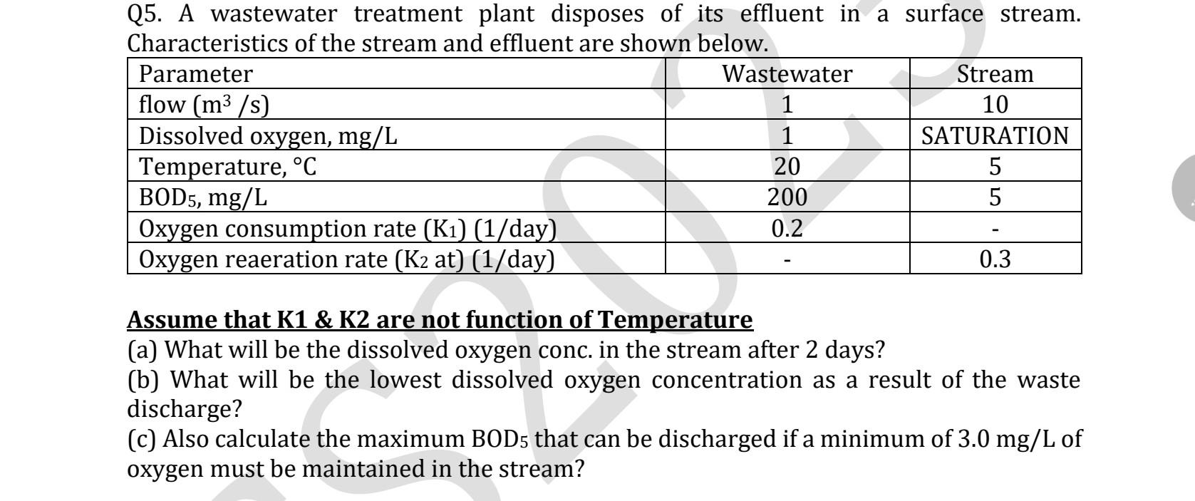 Q5. A wastewater treatment plant disposes of its | Chegg.com