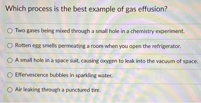 Solved Which process is the best example of gas effusion? | Chegg.com