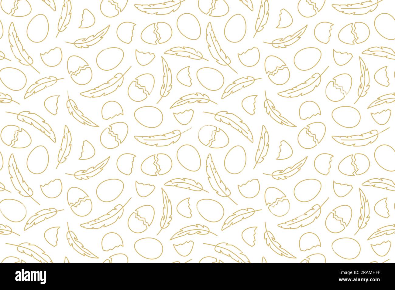 golden seamless pattern with eggs, egg shells and feathers; Easter ...