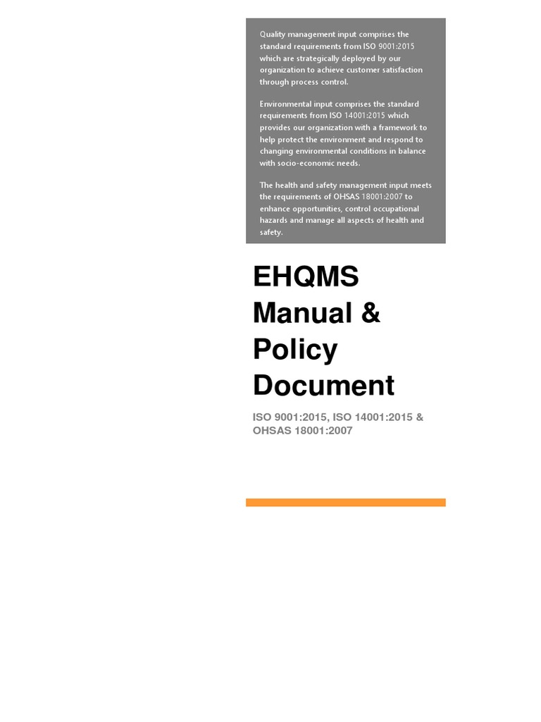 EHQMS Quality Manual & Policy Document Sample | PDF | Occupational ...