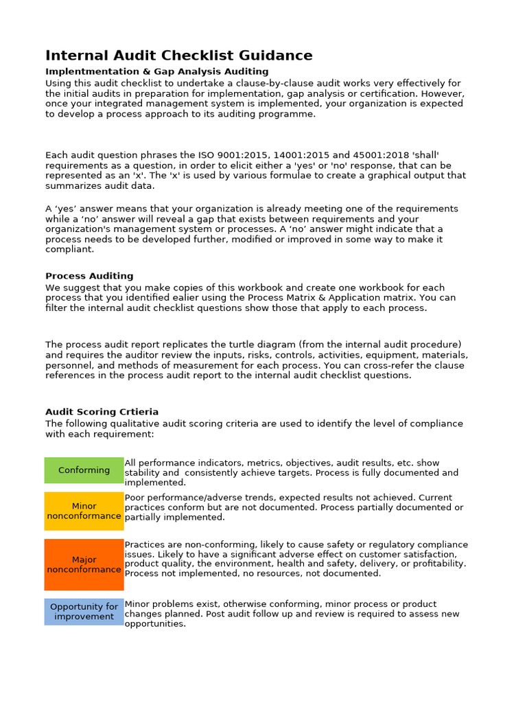 EHQMS Internal Audit Checklist | PDF