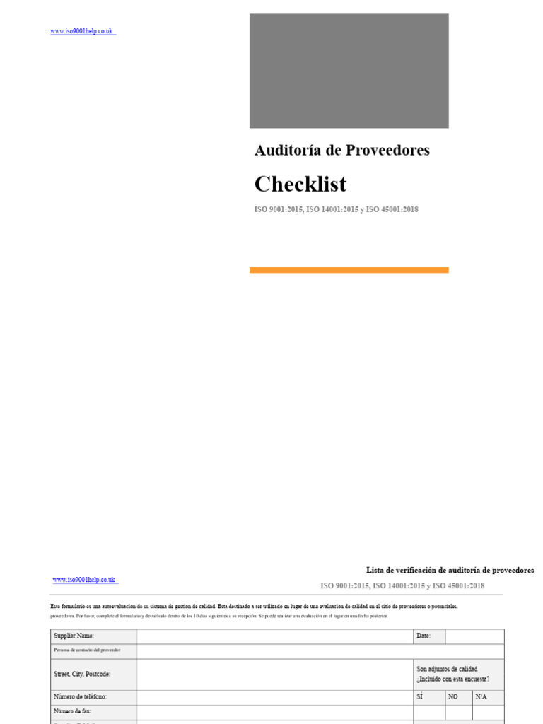 Lista de Verificación de Auditoría de Proveedores de EHQMS | PDF ...