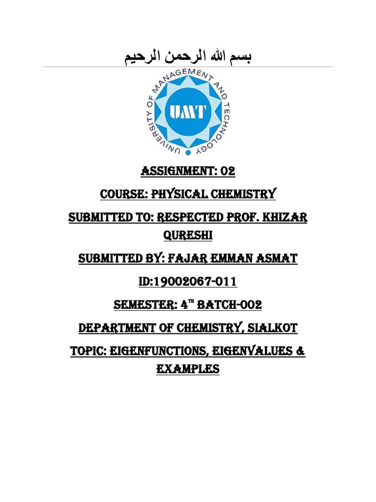 SOLUTION: Eigenvalues and eigen functions examples - Studypool