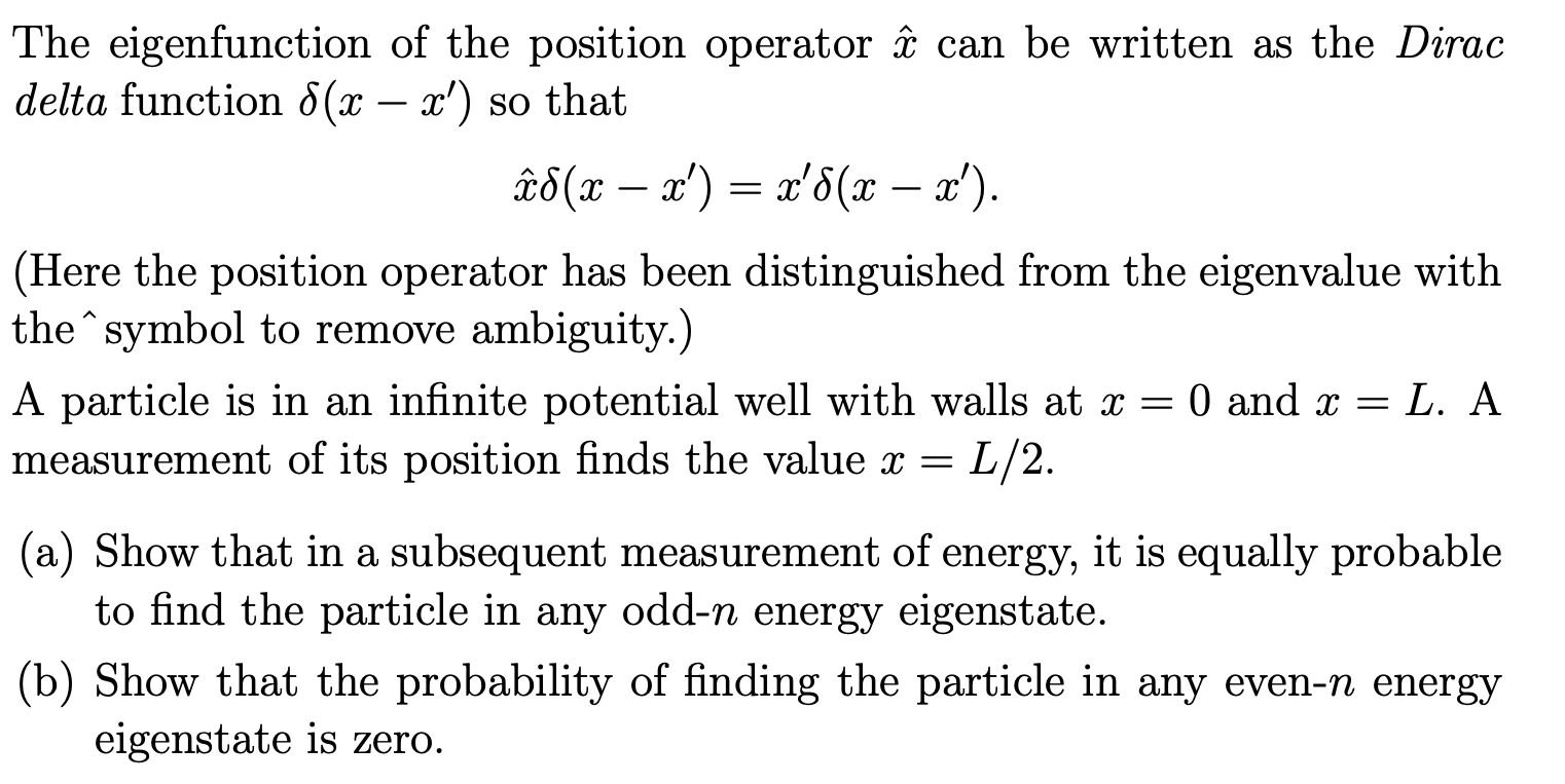 Solved The eigenfunction of the position operator x^ can be | Chegg.com