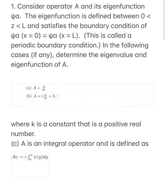Solved 1. Consider operator A and its eigenfunction Wa. The | Chegg.com