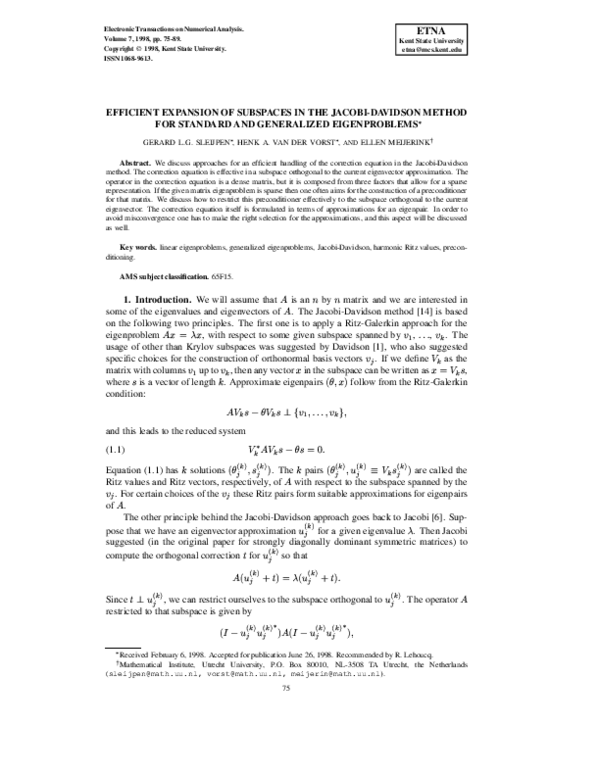 (PDF) Efficient expansion of subspaces in the Jacobi-Davidson method ...