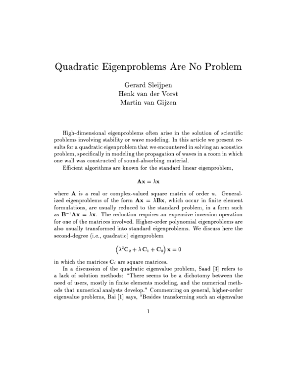 (PDF) Quadratic eigenproblems are no problem