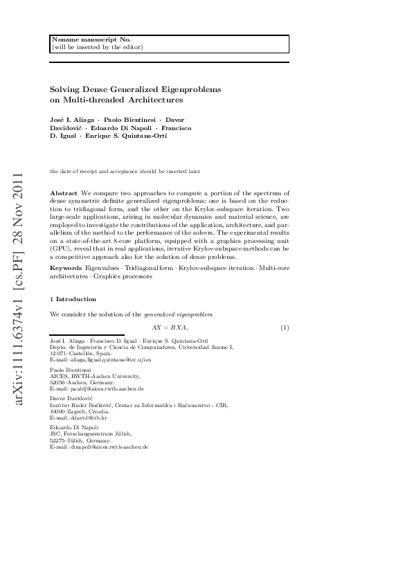 (PDF) Solving dense generalized eigenproblems on multi-threaded ...