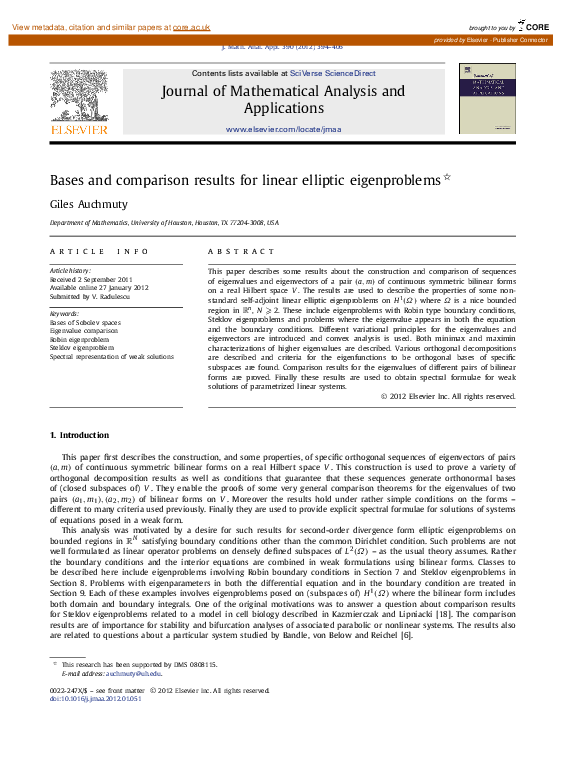 (PDF) Bases and comparison results for linear elliptic eigenproblems