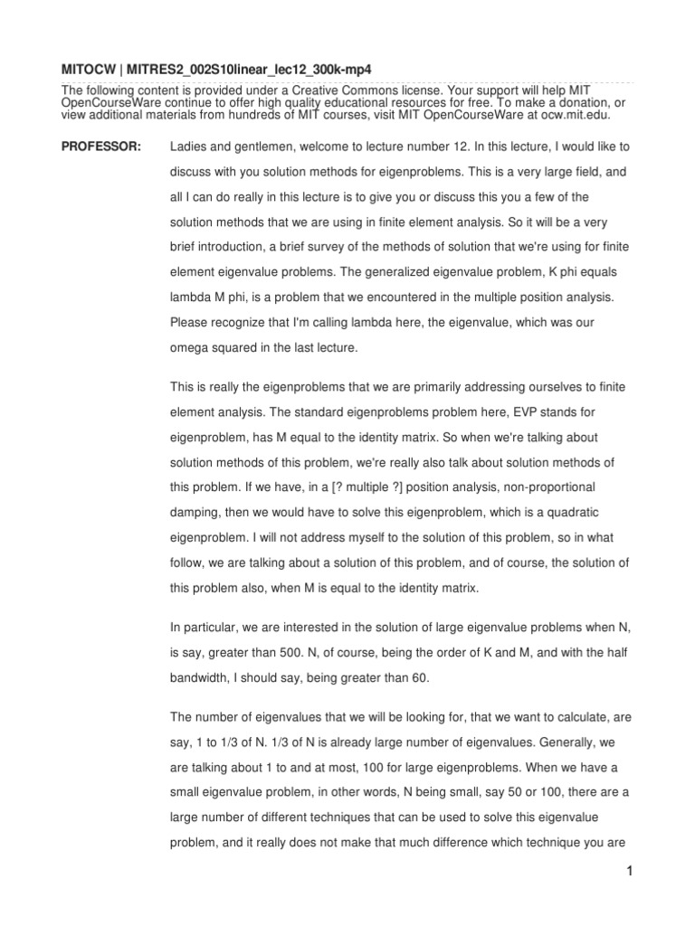 Solution Methods for Eigenproblems in Finite Element Analysis | PDF ...