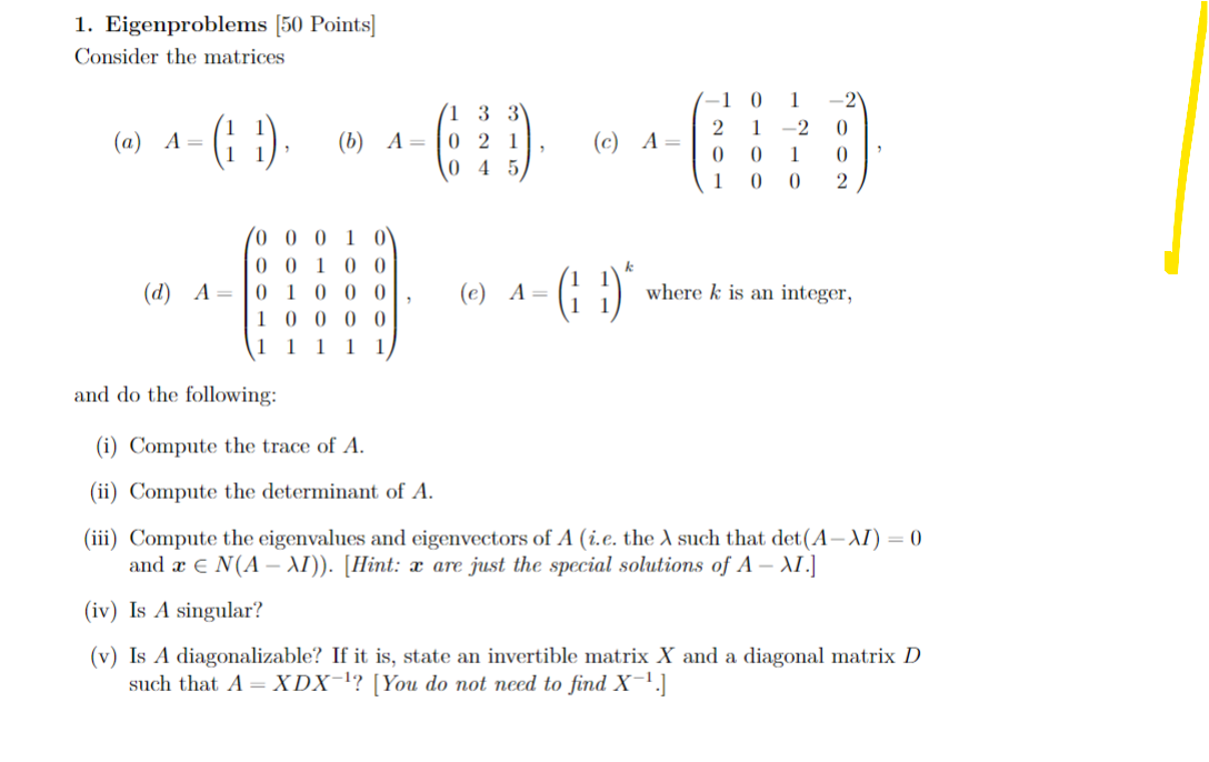 Solved 1. Eigenproblems [50 Points] Consider the matrices | Chegg.com