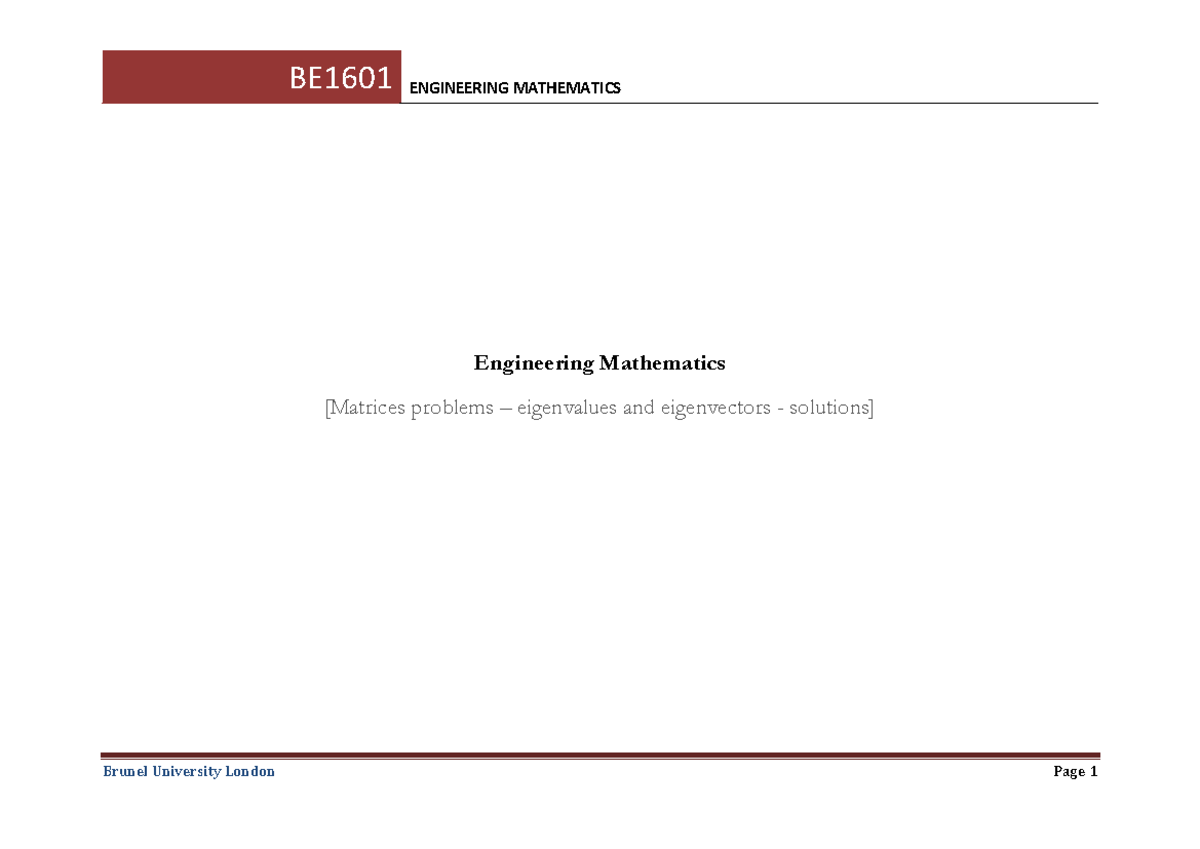 Exercises Week 6 - eigenproblems solutions - Engineering Mathematics ...