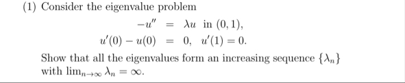 Solved (1) Consider the eigenvalue | Chegg.com