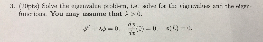 Solved 3. (20pts) Solve the eigenvalue problem, i.e. solve | Chegg.com