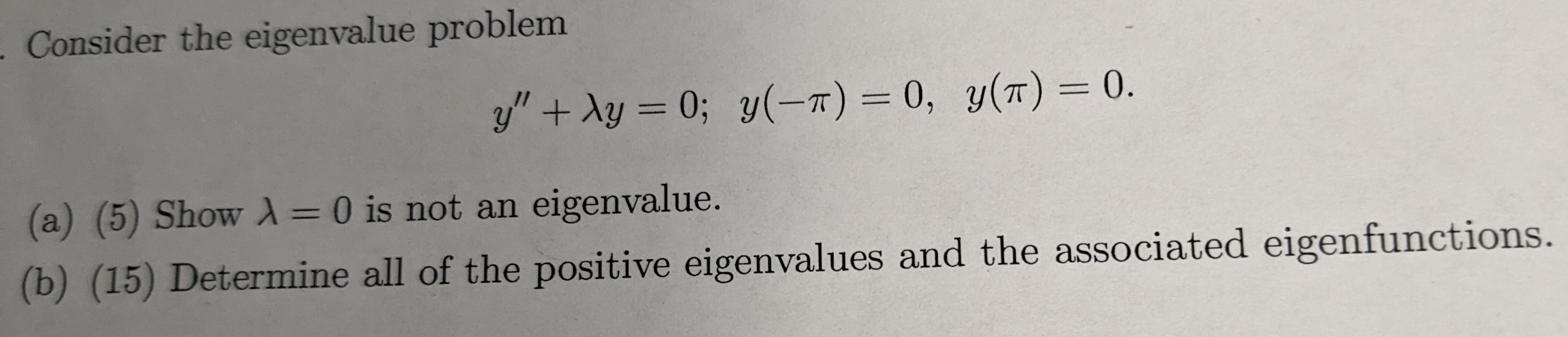 Solved (a) Consider the eigenvalue problem | Chegg.com