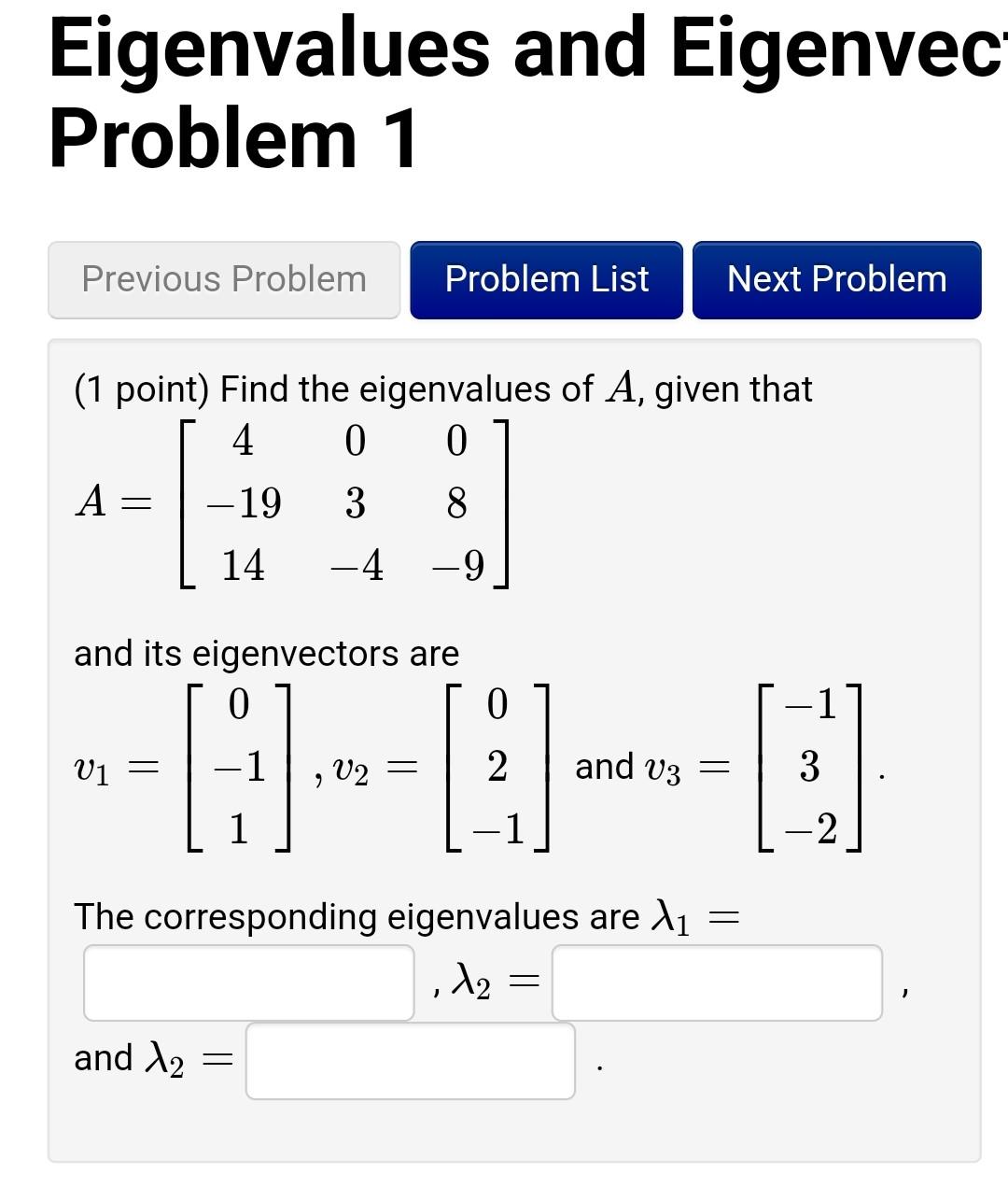 Answered: (1 point) Find the eigenvalues and… | bartleby
