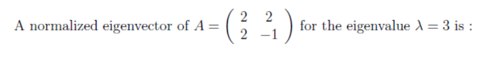Solved A normalized eigenvector of A= 2 2 2 - 1 for the | Chegg.com