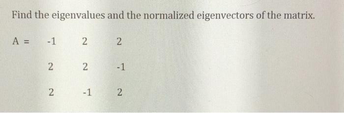 Solved Find the eigenvalues and normalized eigenvectors of | Chegg.com