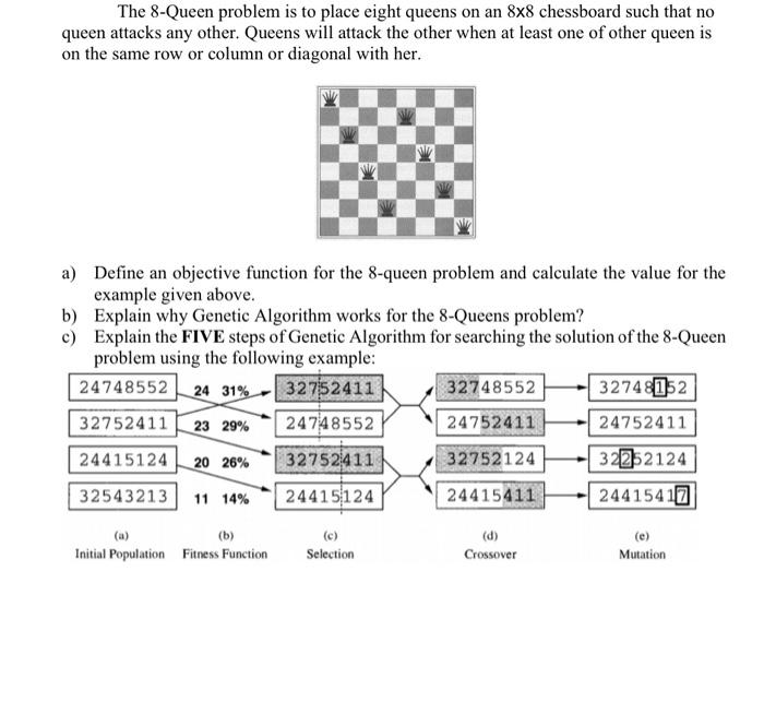 SOLVED: Solve the 8-Queen Problem mentioned below using Genetic ...