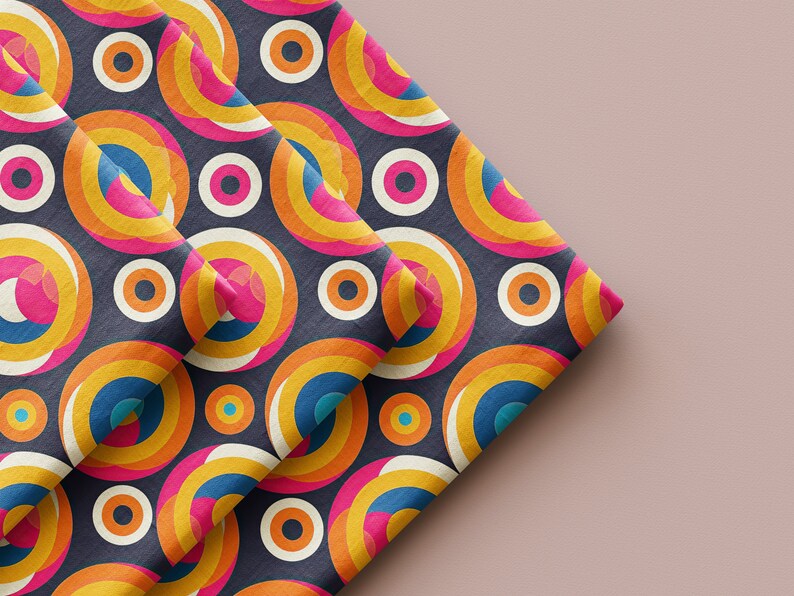 Bold and Playful Retro Pattern Print, Vibrant Colors and Dynamic 70s ...
