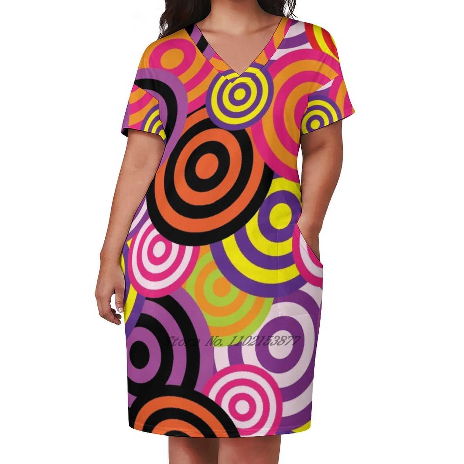 80S Pattern Loose Pocket Dress Women Casual V Neck Dress Printed Dress ...