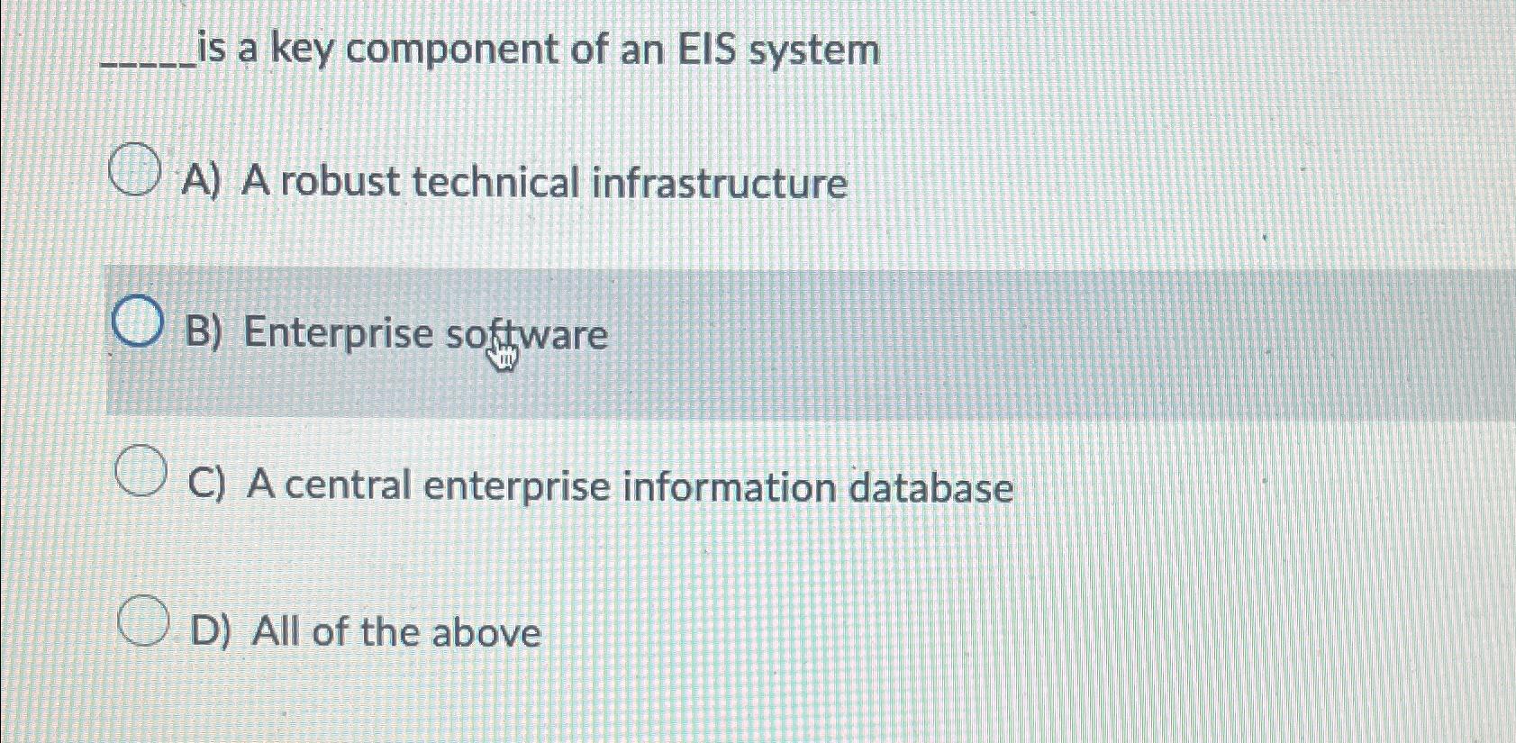 Solved is a key component of an EIS systemA) A robust | Chegg.com