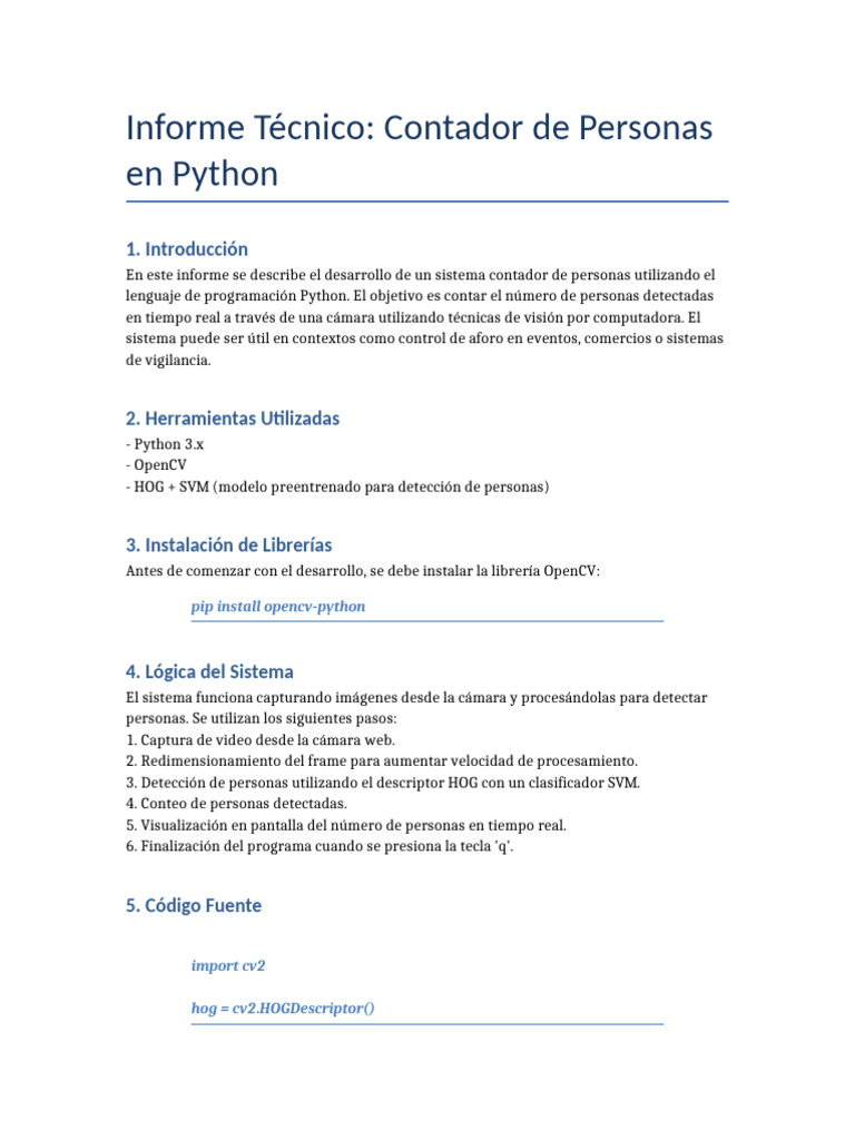 Informe Contador de Personas | PDF | Python (lenguaje de programación ...