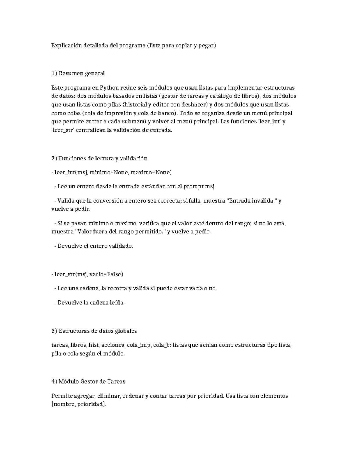 Código Detallado del Programa en Python: Estructuras de Datos y ...