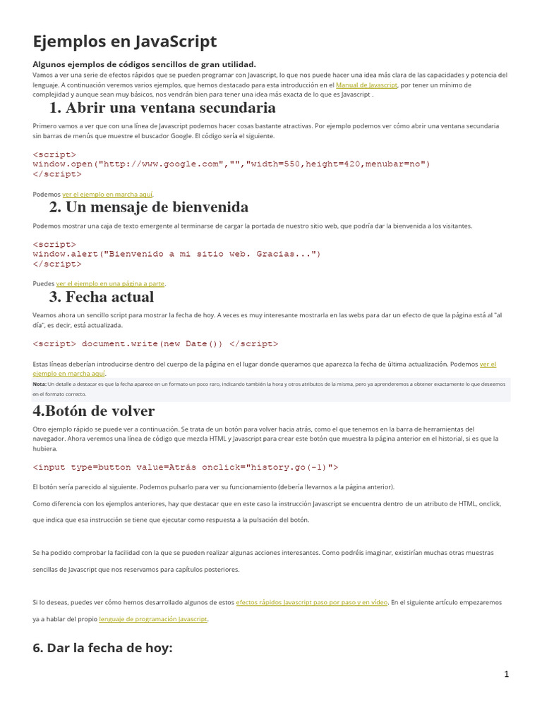 Ejemplos en Javascript | Descargar gratis PDF | Script Java | HTML