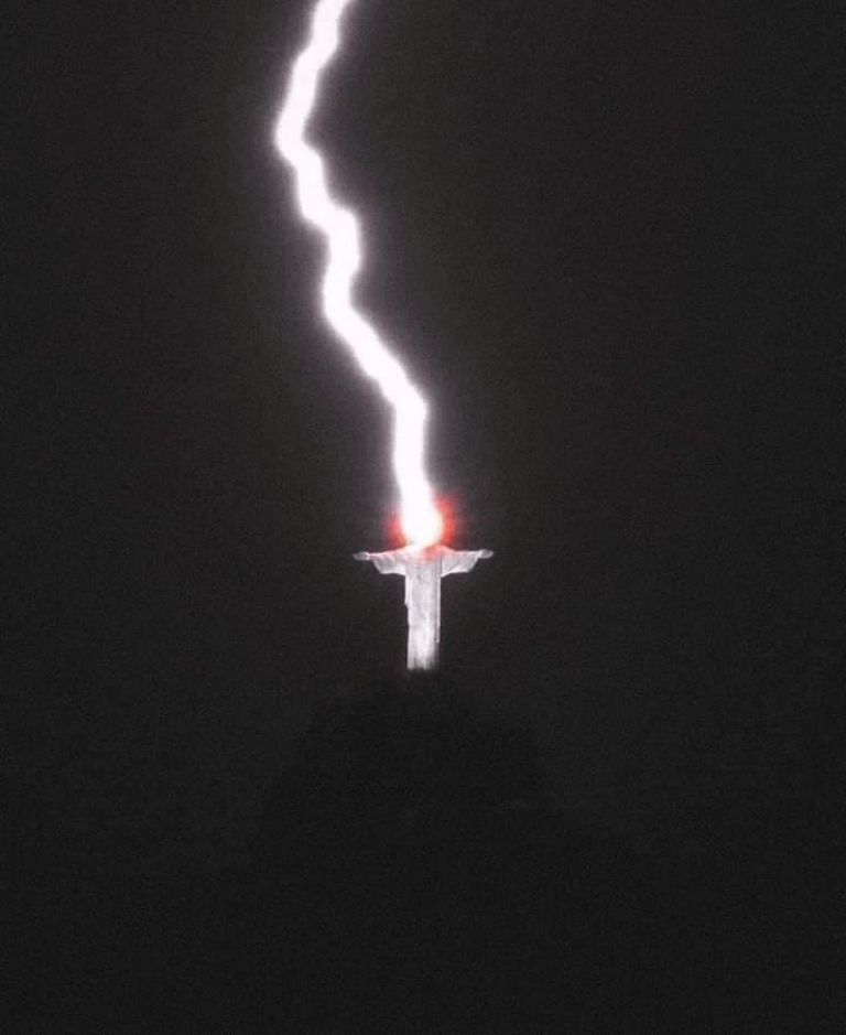 Espectacular imagen: el momento en que un rayo impacta sobre el Cristo ...