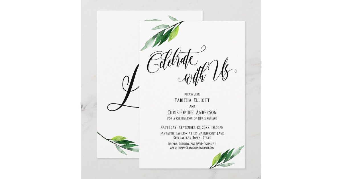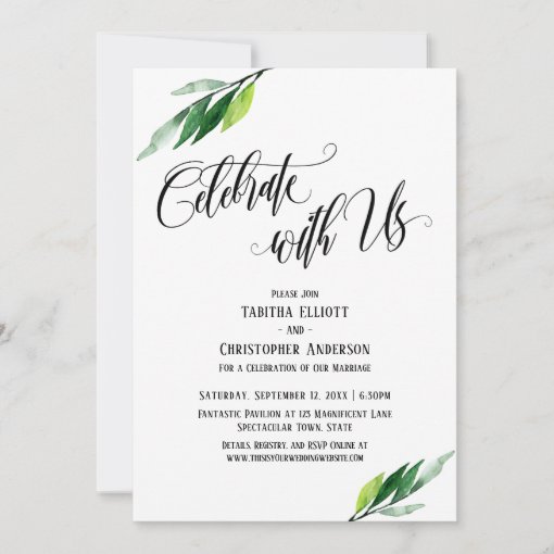 Celebrate with Us Elaborate Script and Greenery Invitation | Zazzle