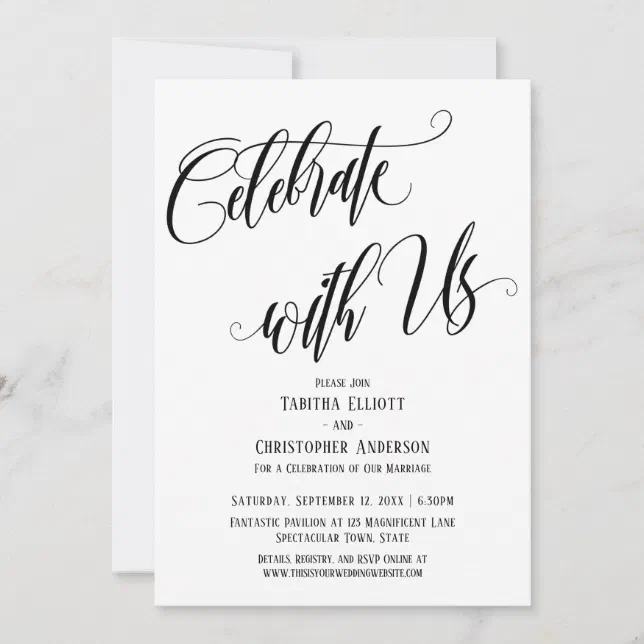 Celebrate with Us Elaborate Script Black White Invitation | Zazzle