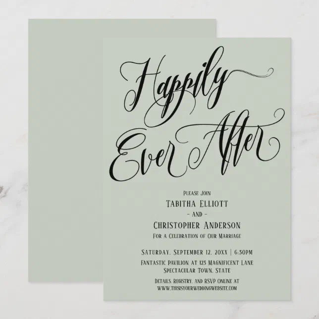 Happily Ever After Elaborate Script Sage Green Invitation | Zazzle