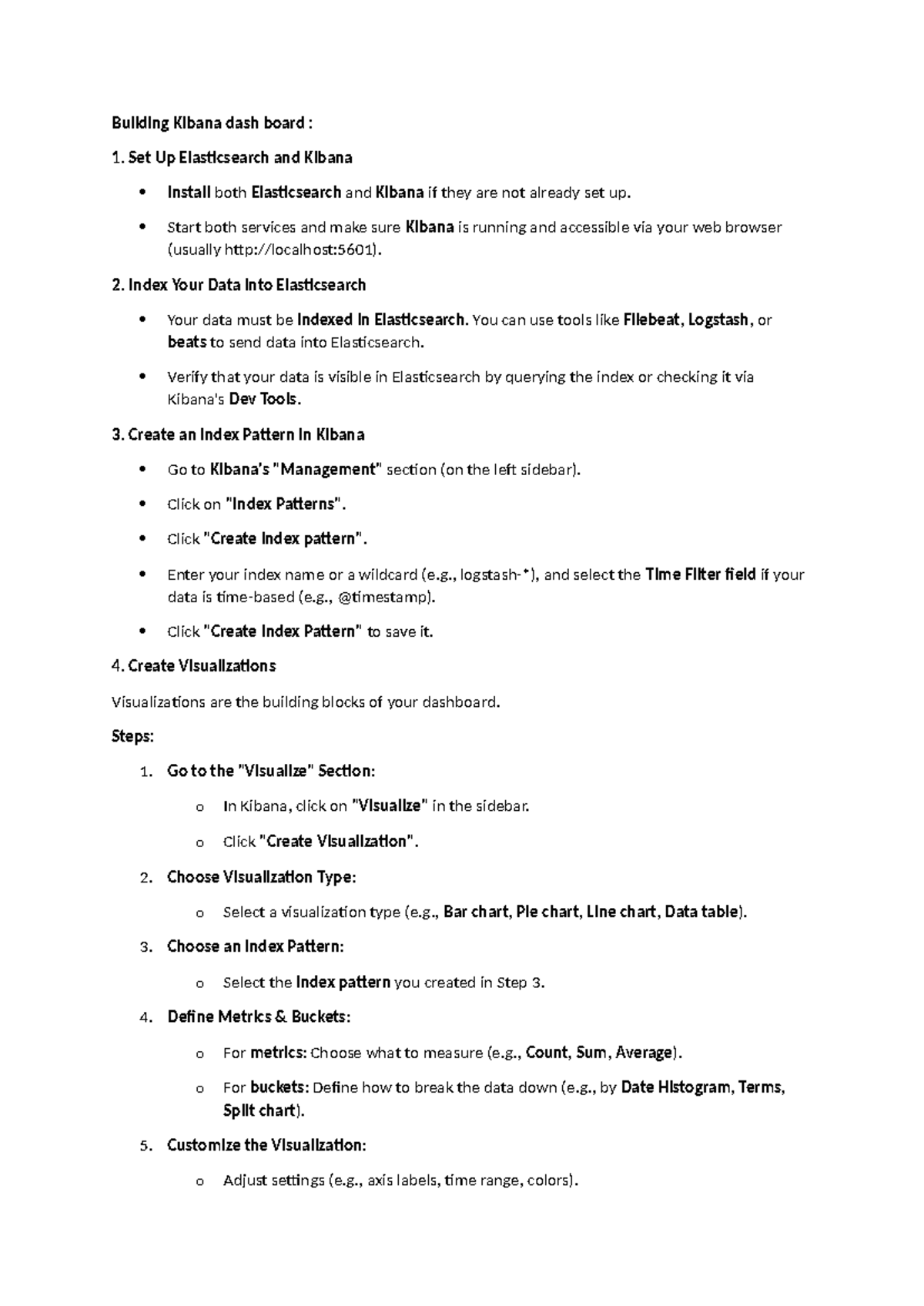 Kibana Dashboard Setup Guide: Elasticsearch & Visualizations - Studocu