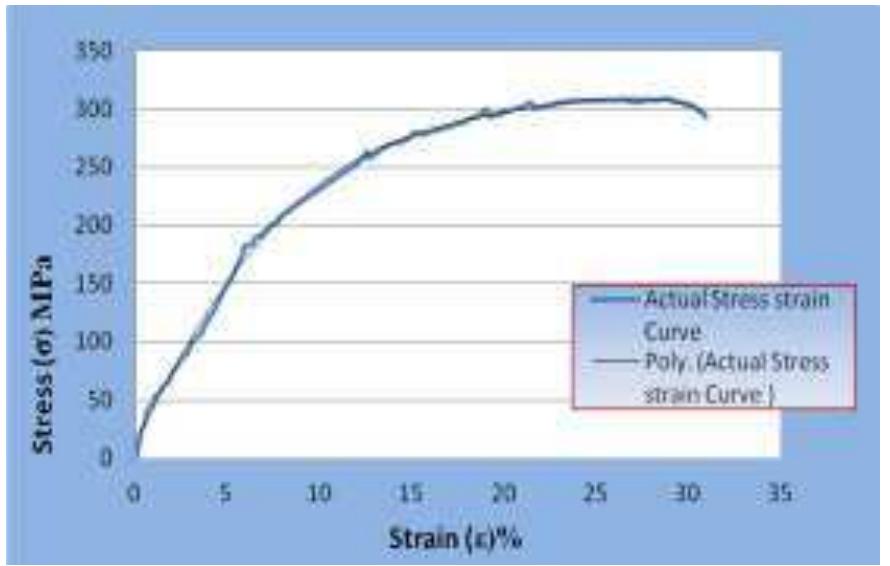 Stress strain curve achieved from the tensile test. 4.2