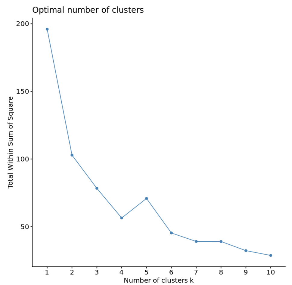 Obtained number of clusters (k) using the elbow method. | Download ...