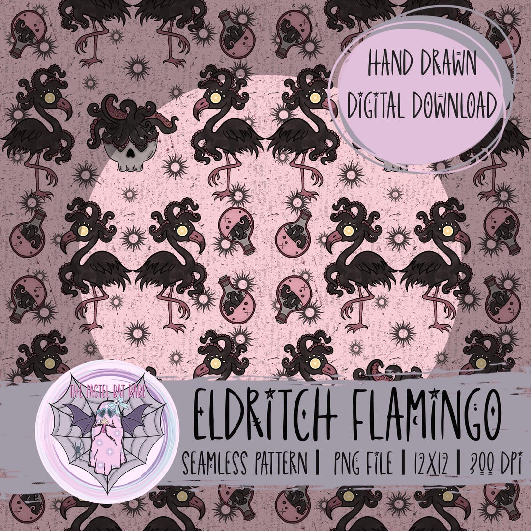 Eldritch Flamingo Seamless Pattern, Pink Halloween Design (digital ...