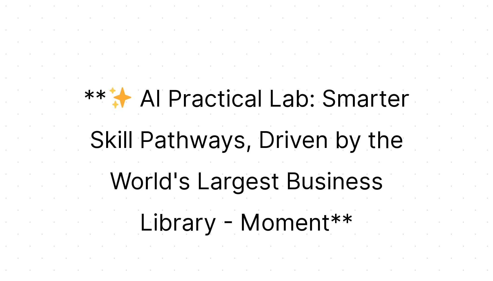 Moment: AI Practical Lab: Smarter Skill Pathways, Driven by the World's ...
