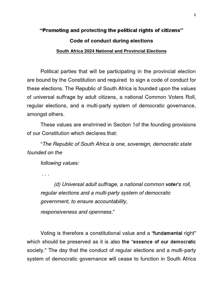 2019 National Assembly Elections Code of Conduct | PDF | Elections ...