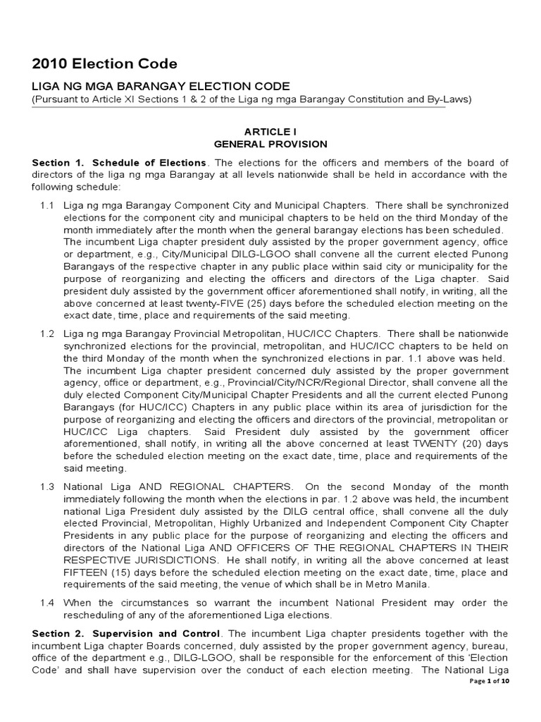 2010 Liga NG Mga Barangay Election Code | PDF
