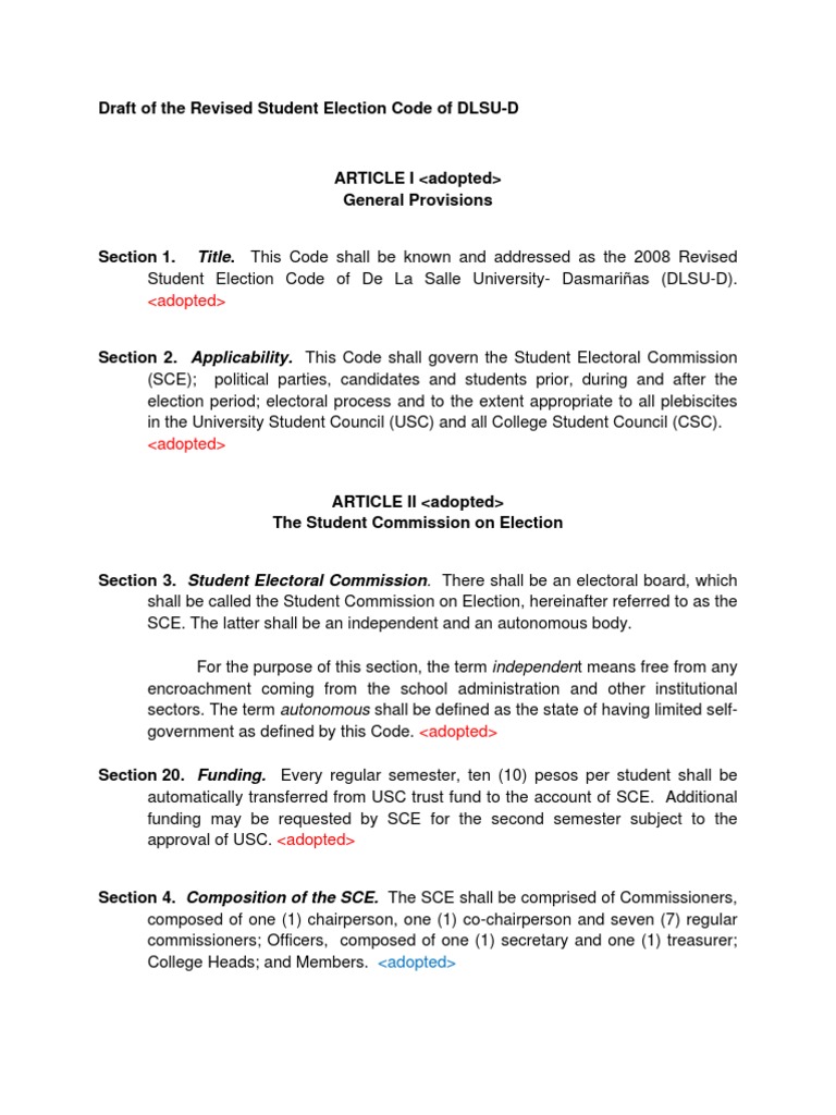 Draft of The Revised Student Election Code of DLSU 3 | PDF | Elections ...