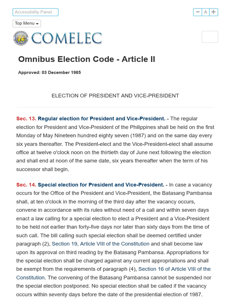 Omnibus Election Code - Article II - Election of President and Vice ...