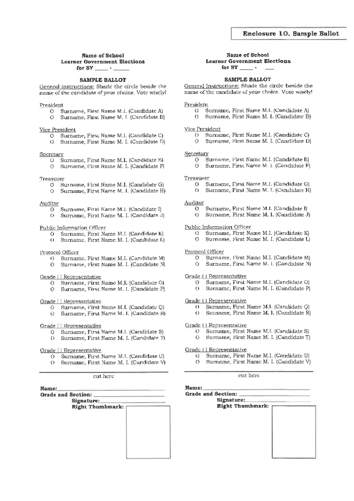 Learner Government Elections Sample Ballot & Tabulation Forms FO-2023 ...