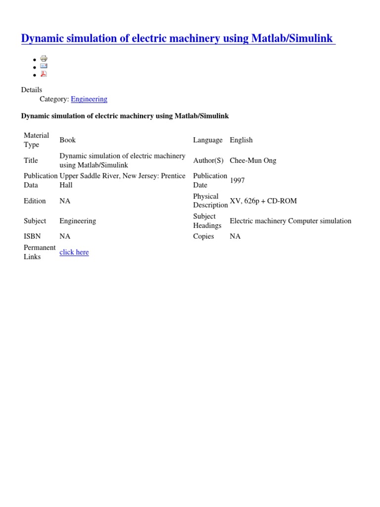 Dynamic Simulation of Electric Machinery Using MATLAB PDF | PDF