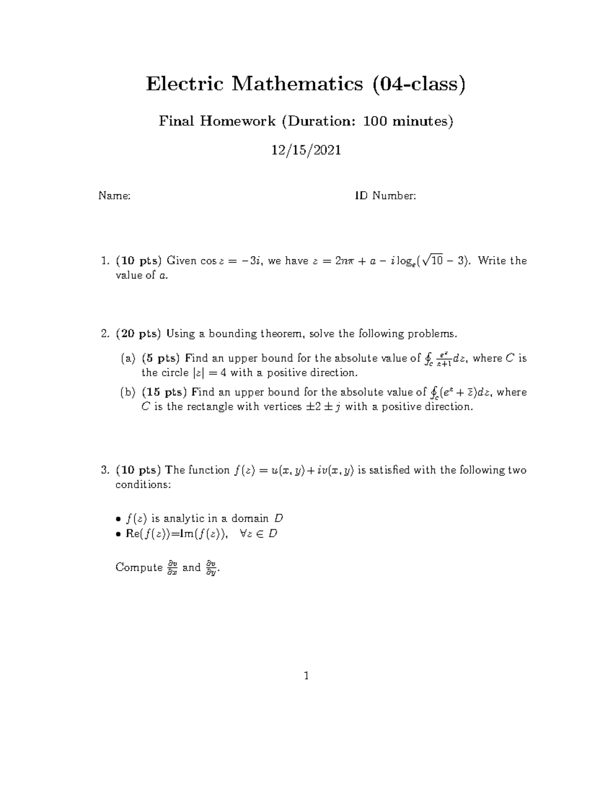 Electric Mathematics Final Homework (Course Code: 2021) - Studocu