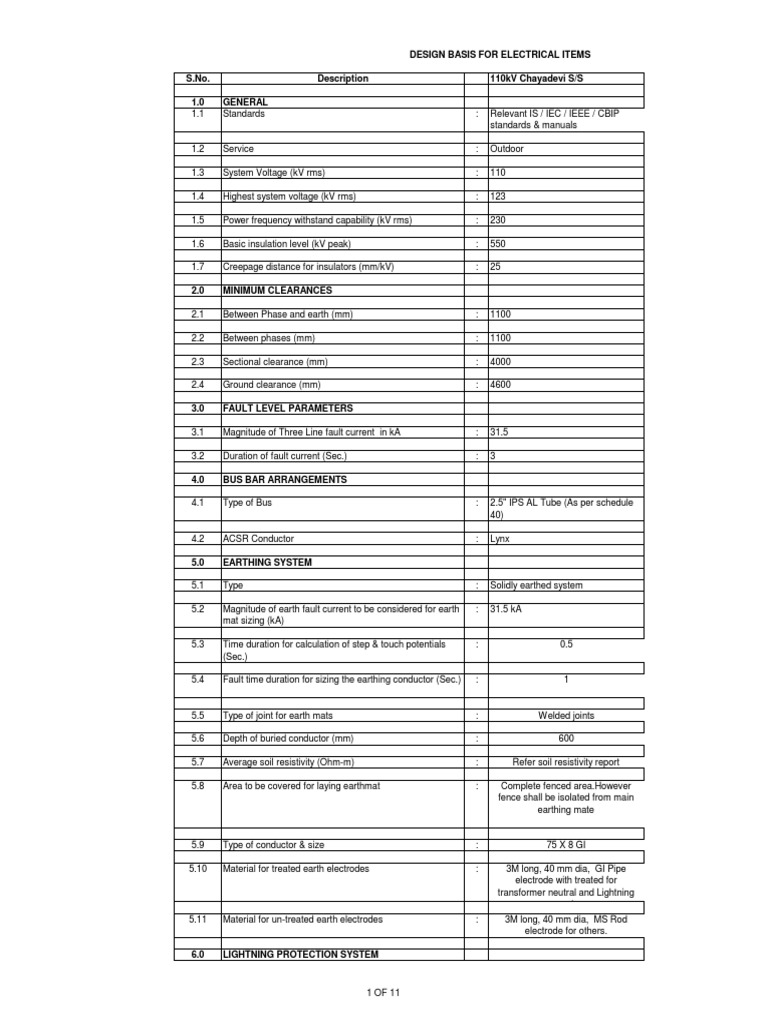 Electrical Design Basis | PDF | Insulator (Electricity) | Electric Current