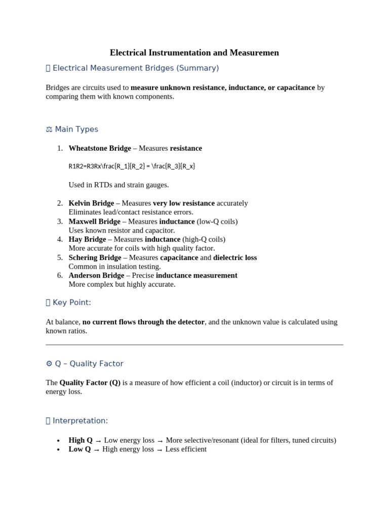 Electrical Measurement and Instrumentation Unit 1 Notes - Basic ...