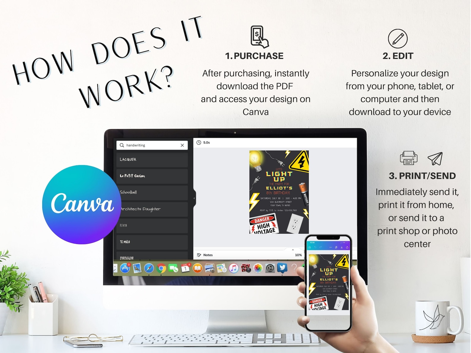 Electricity Birthday Party Invitation, Boys Editable Birthday Invite ...