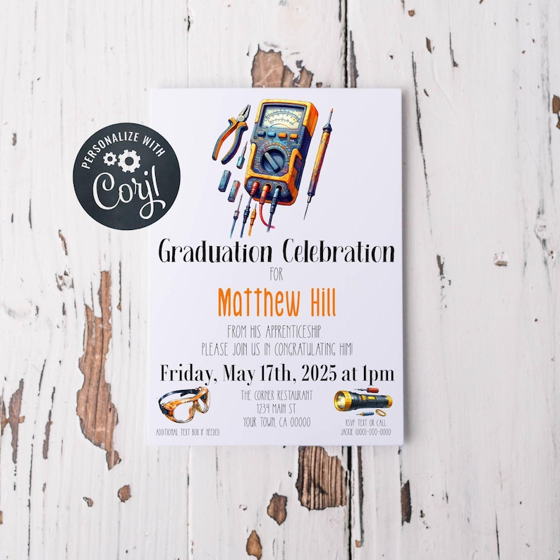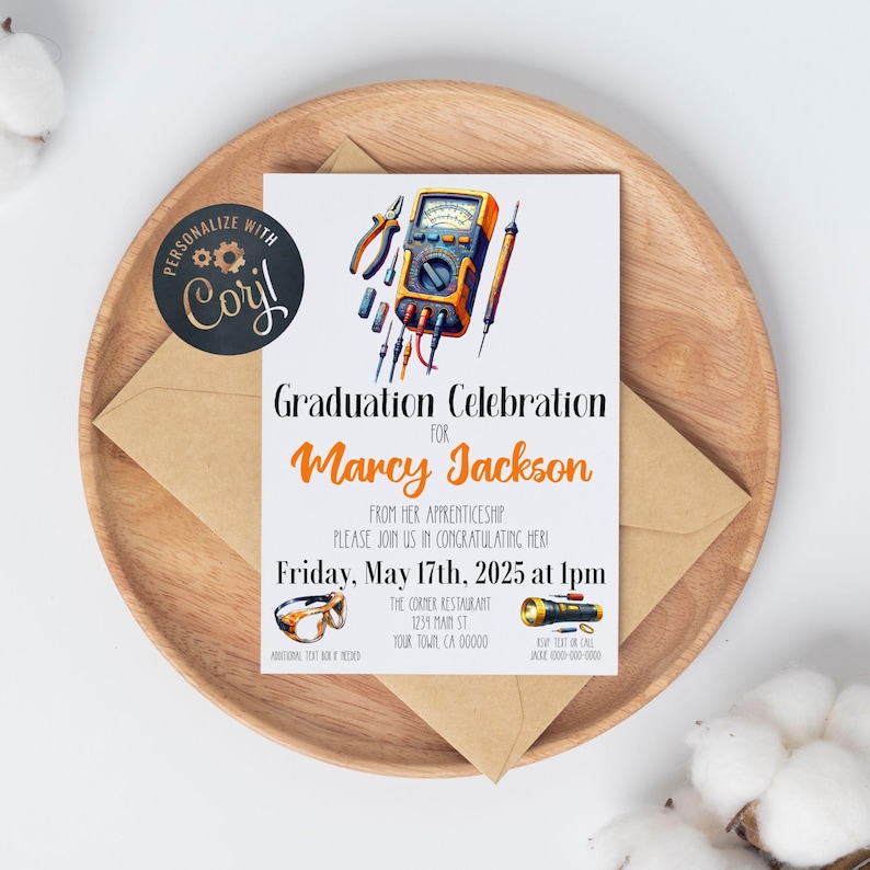 Modern Electrical Engineer School Graduation Party Invitation Template ...